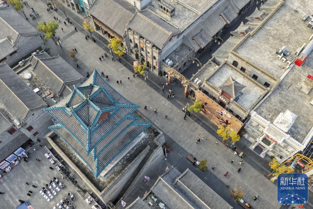 "游客在忻州古城內拍照留念(10月21日攝)。" 感受忻州古城的活力脈動